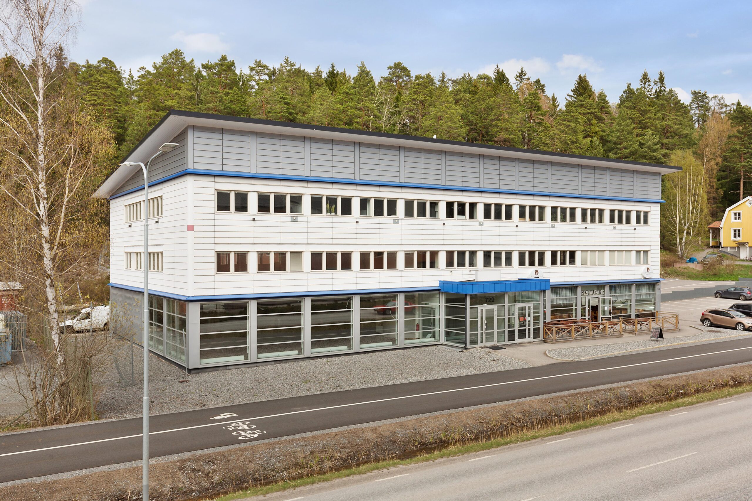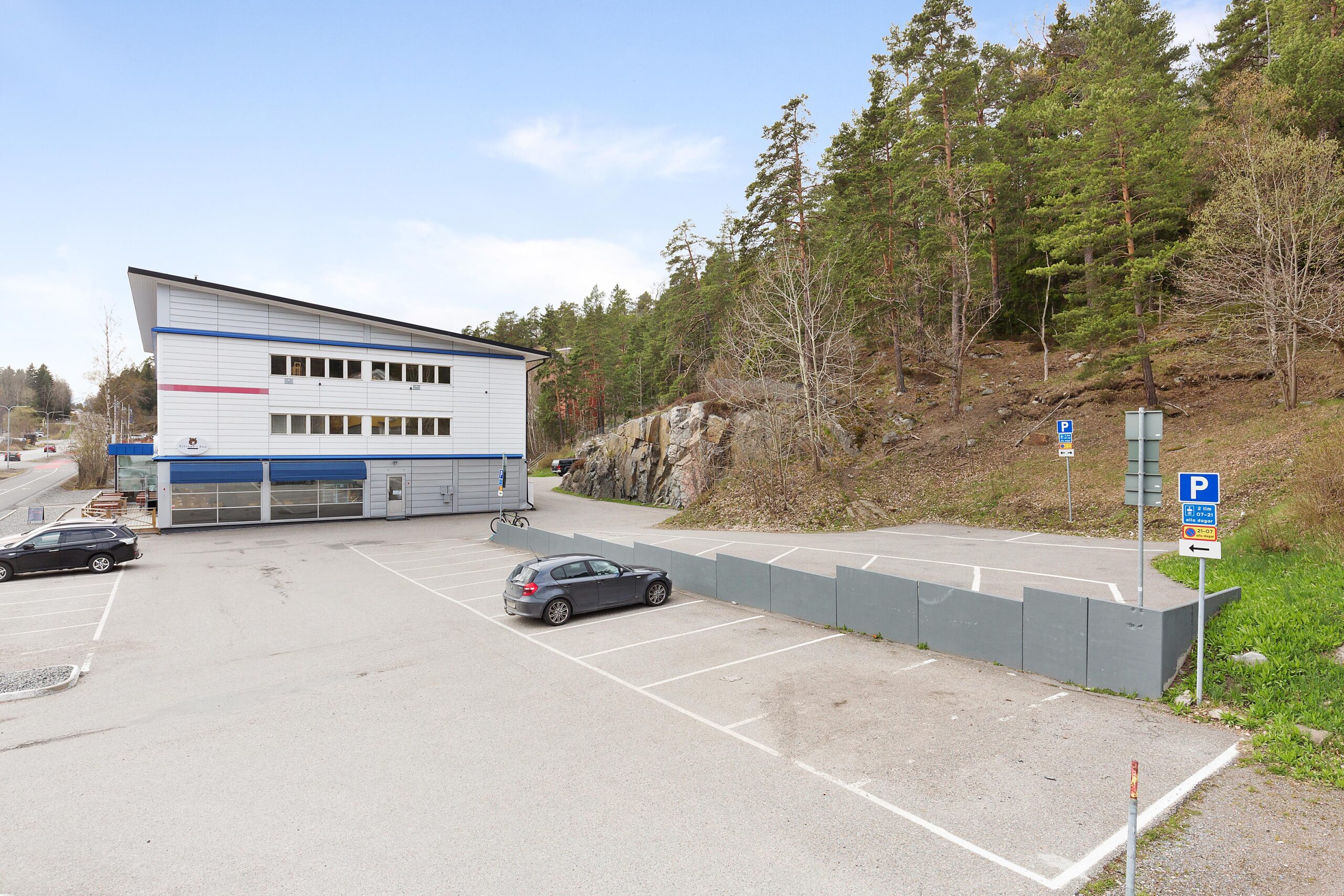 Byggnaden uppfördes 1993 i tre våningsplan och är belägen med närhet till både Värmdövägen och service. Den sammantagna arean uppgår till 1 830 kvadratmeter affärslokaler och nyrenoverade kontorsytor. Fastigheten rymmer bland annat en delikatessbutik och restaurang, en butik för yrkeskläder, en träningsstudio och kontor.